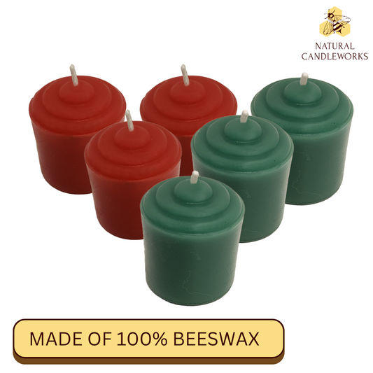 Large Votives 100% Beeswax Christmas Votive Candle Set – Red & Green Festive Hand-Poured Candles for Holiday Decor, Table Centerpieces, and Cozy Ambiance