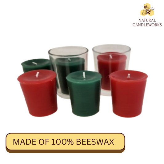 Mini Votive 100% Beeswax Christmas Votive Candle Set – Red & Green Festive Hand-Poured Candles for Holiday Decor, Table Centerpieces, and Cozy Ambiance